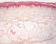 Präparat 4: Mehrschichtiges verhorntes Plattenepithel, Haut der Zehenbeere (Affe), H.-E. |