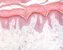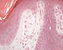 Bereits in der Übersicht erkennt man die mit Epithelgewebe überzogenen natürlichen Oberflächen. Die Außen- (Gesichts-)seite der Lippe ist an den Anschnitten von Haaren zu erkennen; die Innen- (Mundhöhlen-) seite trägt keine Haare. Das Bindegewebe unter den Epithelien ist relativ derb, das Innere der Lippe wird von Muskelfeldern beherrscht. Das mehrschichtig verhornte Plattenepithel der Gesichtshaut geht mundwärts fließend in ein mehrschichtig unverhorntes Plattenepithel über. Auf der Gesichtsseite sind Anschnitte von Haaren, die mit ihrem Bulbus in die Tela subcutanea reichen, mit den dazugehörigen holokrinen Talgdrüsen zu finden. Außerdem findet man im Subkutis Drüsenschläuche merokriner Schweißdrüsen. |