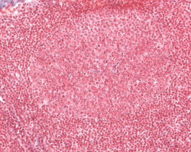 gehören zu den Leukozyten. Morphologisch können kleine und große Lymphozyten unterschieden werden. Die kleinen Lymphozyten (Durchmesser von 6-8 µm) weisen einen runden, intensiv angefärbten Zellkern auf, der von einem sehr schmalen Zytoplasmasaum umgeben ist. Funktionell und immunhistochemisch werden bei diesem Zelltyp der zellulären Immunität dienende T-Lymphozyten von antikörper-produzierenden B-Lymphozyten unterschieden. Die großen Lymphozyten haben einen Durchmesser von 8-12 µm; sie besitzen eine ovalen Zellkern. Die für T- oder B-Lymphozyten charakteristischen Oberflächenmoleküle fehlen meist, man bezeichnet sie daher auch als Non-T- bzw. Non-B-Zellen.