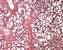 Das Gewebestück besteht aus unregelmäßig begrenzten Bindegewebsfeldern, zwischen denen univakuoläres Fettgewebe liegt. Eine natürliche Oberfläche ist nirgendwo auszumachen. In den Bindegewebsfeldern liegen kleine Läppchen von Drüsengewebe (Lobuli glandulae mammariae) und unregelmäßig gebuchtete Anschnitte des Ausführungsgangsystems (Ductus lactiferi). |